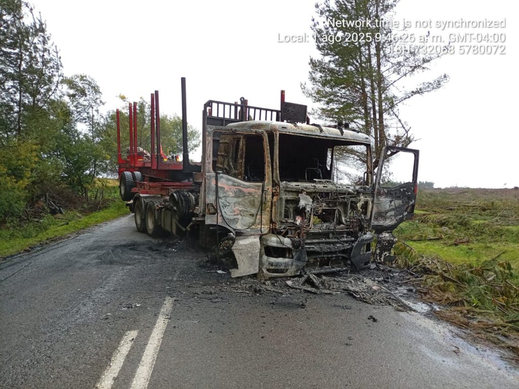 Según información preliminar, el ataque se registró pasadas las ocho de la mañana se habría confirmado que las cargas pertenecían a la empresa CMPC, sin embargo las máquinas de transporte corresponden a un contratista.